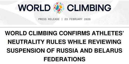 Výkonná rada World Climbing (mezinárodní lezecká závodní federace, dříve IFSC) v únoru zrušila pozastavení členství ruské a běloruské federace a umožní jejich sportovcům závodit na mezinárodních závodech v lezení. Obě federace, jejichž suspendace byla původně nařízena v březnu 2022, byly nyní znovu přijaty na základě potvrzujícího dopisu zaslaného příslušným prezidentům, informuje World Climbing. ... celý článek