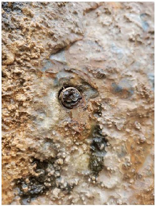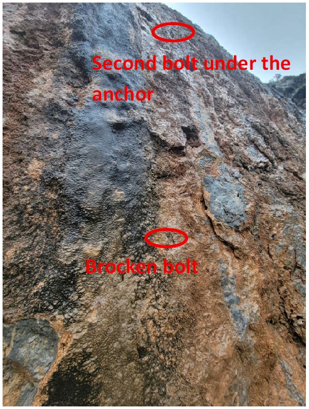 •   Nýt č. 3 (níže pod bodem): Tento prvek byl nalezen zlomený, podobně jako slaňovací bod.
