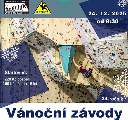 Chtěli bychom vás pozvat na vánoční závody 24.12. na naší stěně na Ruzyni v Praze. Závod začne od 8:30 a stěna bude otevřena do 14 hodin. Přijďte si s námi užít sváteční pohodu a k tomu si zazávodit a zalézt. ... celý článek